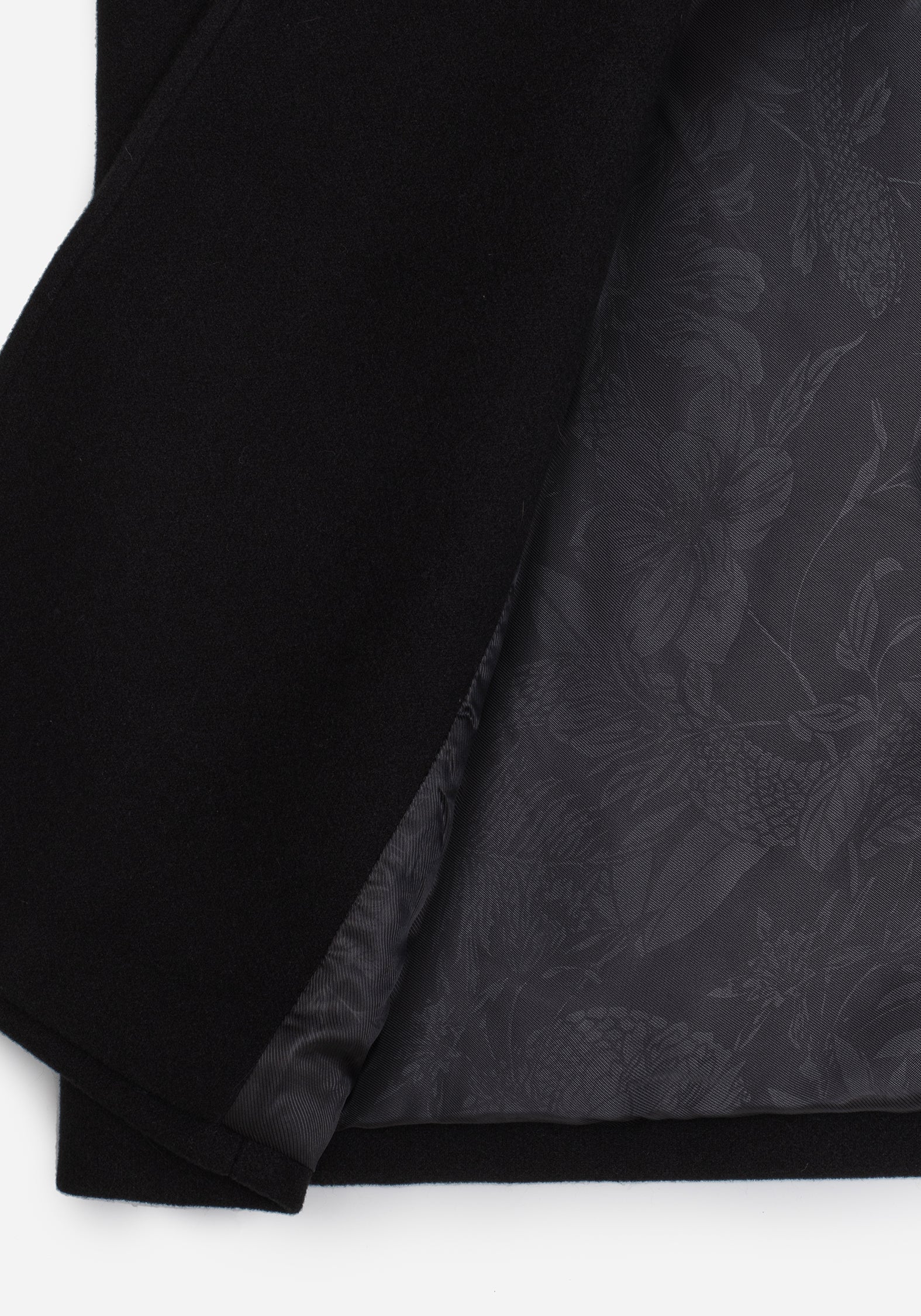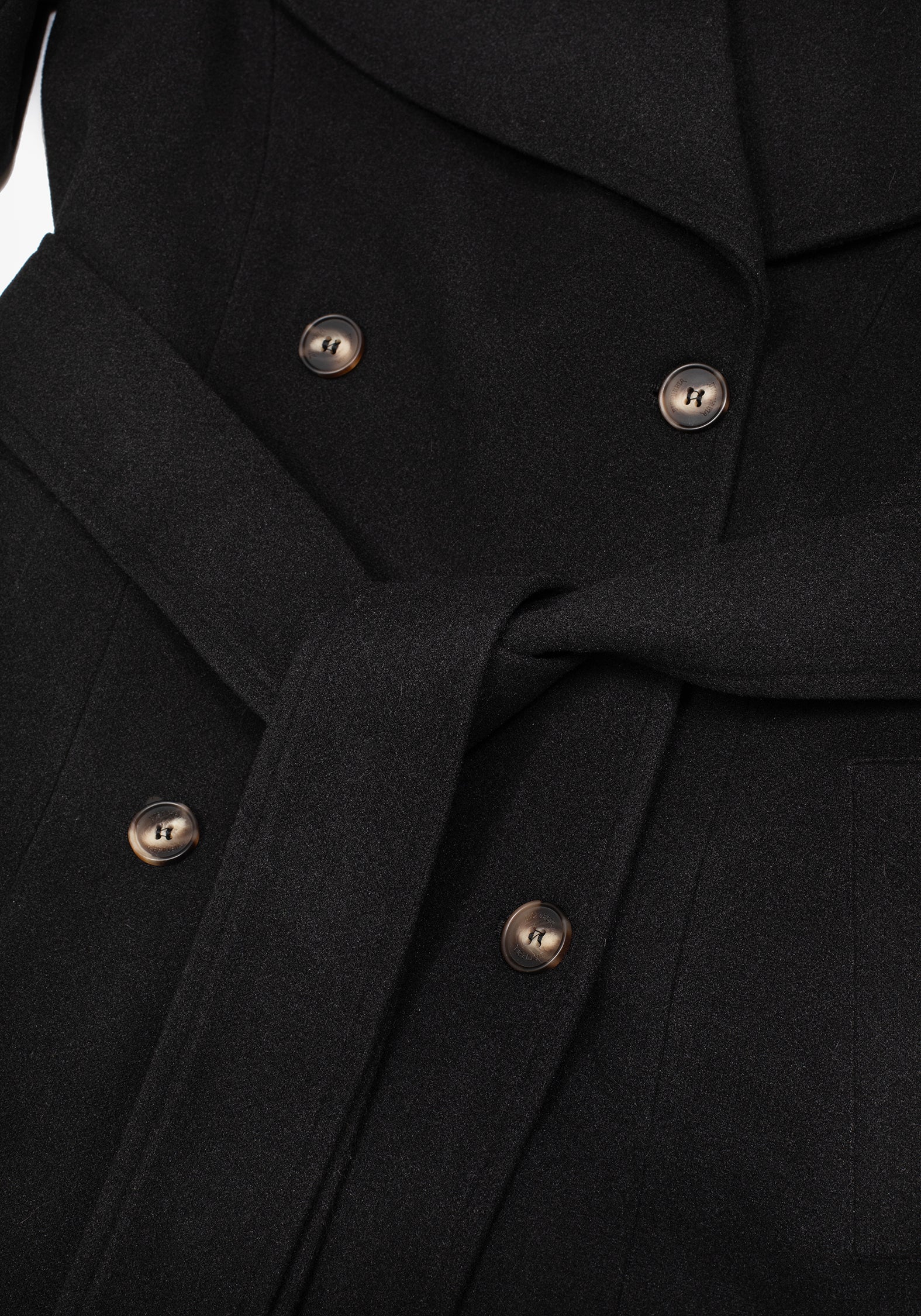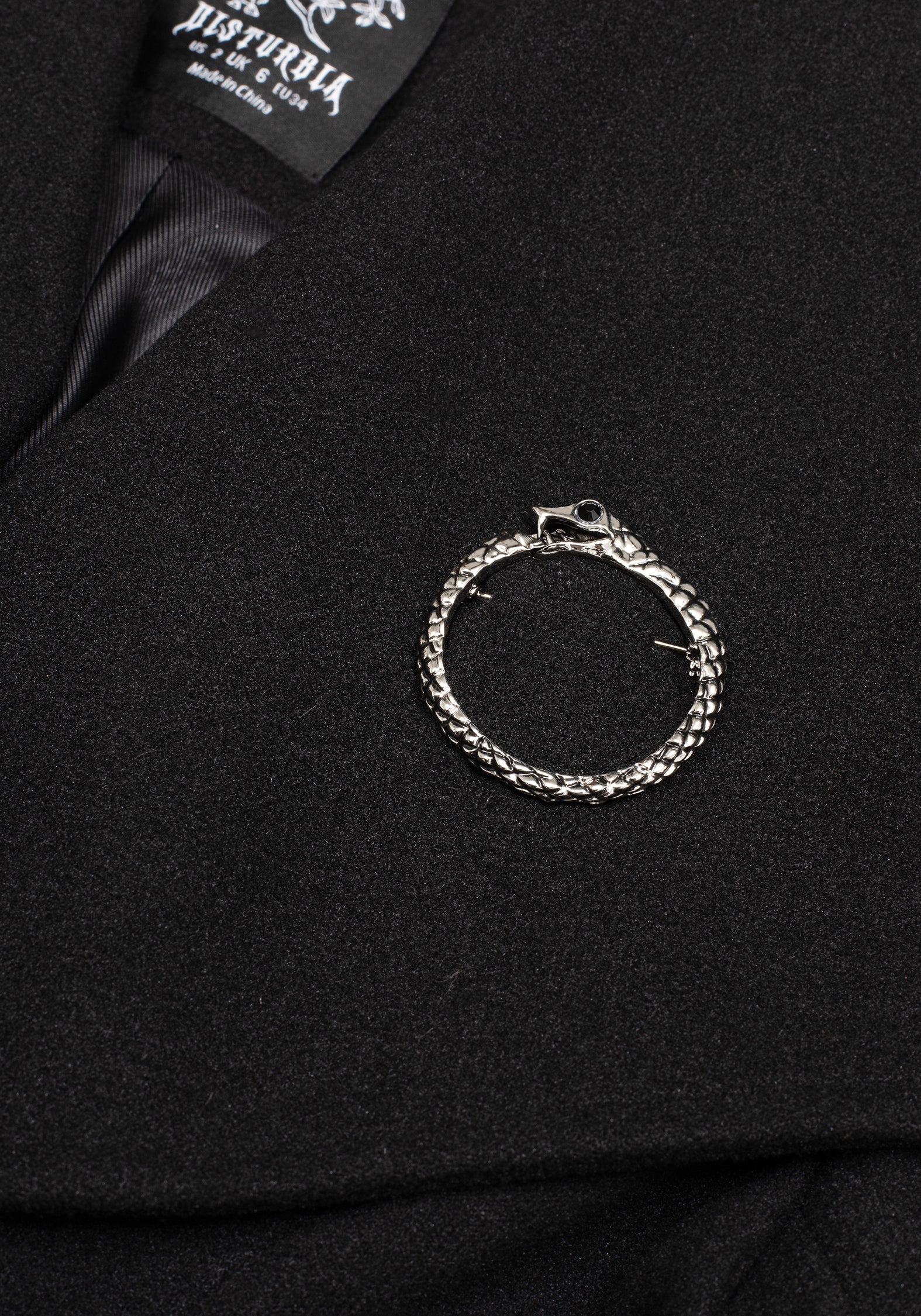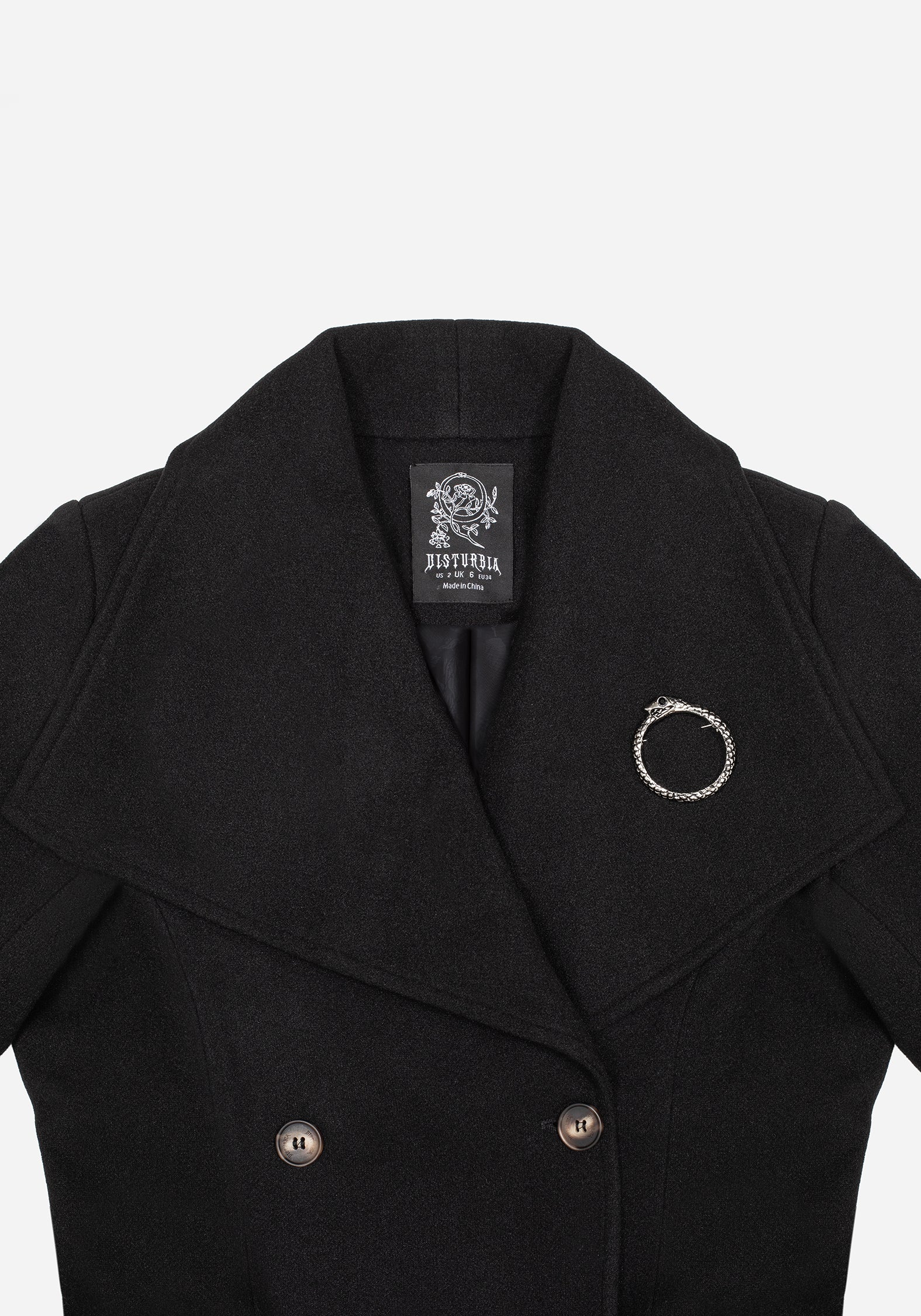 Abyss Tie Waist Double Breasted Coat With Snake Brooch - Black